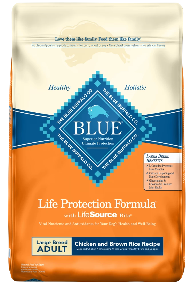 - LARGE BREED DOG FOOD: Specially formulated for the wellness of adult large breed dogs, BLUE Life Protection Formula® Large Breed dry dog food contains glucosamine and chondroitin to help support joint health and overall mobility of bigger dogs.