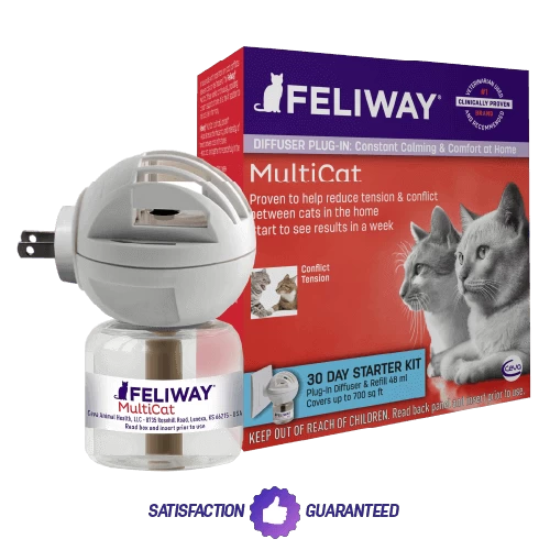 FELIWAY MultiCat is an easy-to-use solution to reduce conflict between cats living together. It may help decrease fighting, chasing, blocking and staring.