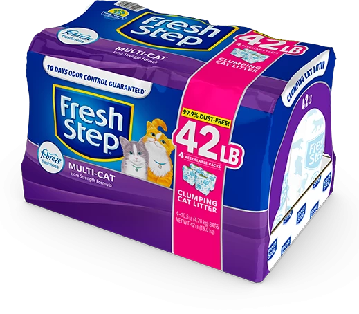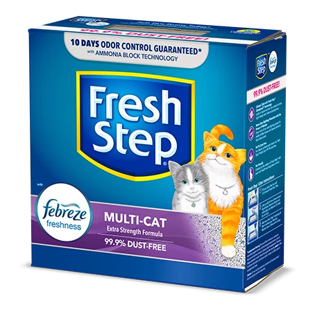 - – Increased odor-fighting protection with the power of Febreze for multi-cat litter boxes. 10-day Odor Control GUARANTEED. Leaves behind a fresh clean scent.