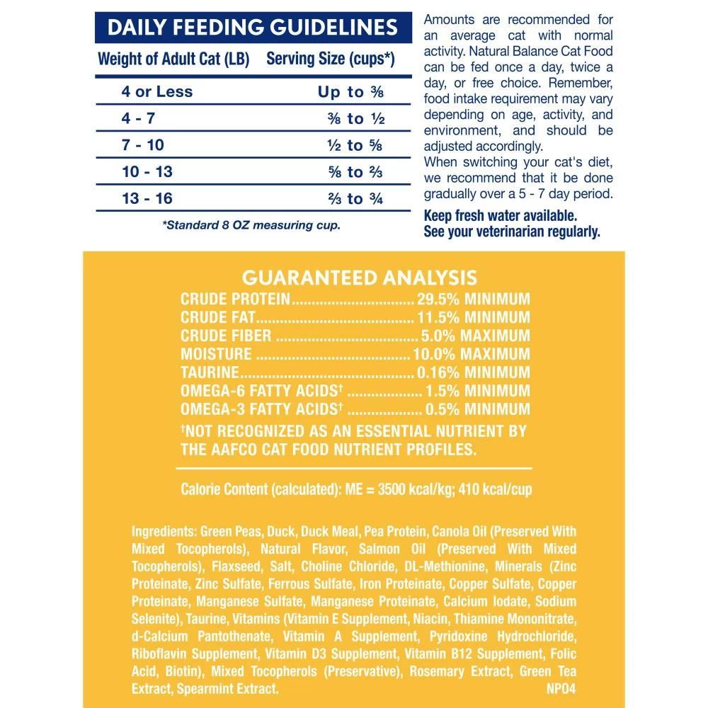 Designed with a limited number of premium protein and carbohydrate sources, this Grain-free cat food is an excellent choice when seeking alternative ingredients for your cat. Natural Balance L.I.D. Limited Ingredient Diets Green Pea and Duck Dry Cat Food is designed to support healthy digestion and to maintain skin and coat health—all while providing complete, balanced nutrition for all life stages!