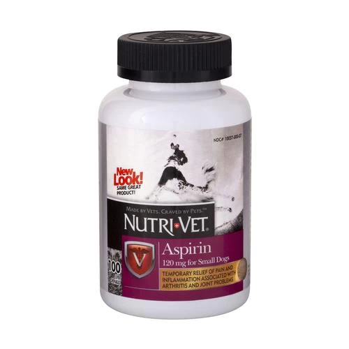 Nutri-Vet Aspirin Chewable Tablets provide temporary pain relief for dogs and reduce inflammation associated with arthritis and joint problems. For dogs less than 50 pounds.