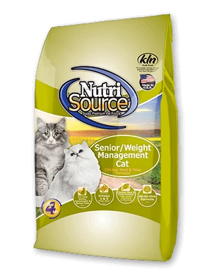 - As a member of our grain inclusive series of dog foods, NutriSource Senior / Weight Management Recipe Cat Food is formulated to meet AAFCO guidelines for all life stages.