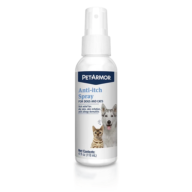 Dogs and cats can suffer from dry skin, skin irritation and allergy dermatitis. PetArmor Anti-Itch Spray for Dogs and Cats can help soothe, dry and heal moist “hot spots.” It relieves itching and helps control the spread of lesions. The anti-itch spray provides immediate soothing relief and does not sting.