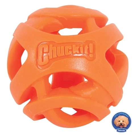Run farther, fetch longer® with the Chuckit!® Breathe Right® Fetch Ball! The patent-pending high-performance ball is designed to allow your dog to run farther and fetch longer during playtime. The hollow, mesh-like design facilitates breathing and airflow into your dog’s lungs while running and fetching. Great for playing near a pool or other body of water since it also floats. Made from durable material, the Chuckit! Breathe Right Fetch Ball is lightweight and easy to grab. It helps to keep your dog active and healthy as it promotes exercise and activity. Great for dogs that may tend to get bored easily. The Breathe Right Fetch Ball is compatible with all Chuckit! Launchers. May also be used a treat toy by utilizing the openings in the toy that allow you to place treats inside. Available in small, medium, large, and x-large for dogs of all breeds and sizes.