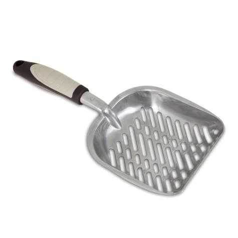 If you’re having a hard time handling large amounts of litter clumps with your current litter scoop, the Petmate® Metal Litter Scoop is just the scoop you need. It’s slotted scoop bowl is made from heavy-duty aluminum built to withstand years of scoopings (we know, not fun). Featuring a large bowl and sharp edges to scrap off tough-to-remove waste, the Petmate Metal Litter Scoop makes cleaning the litter box faster and easier. The two-toned, TPR handle is pliable and has an ergonomic comfortable grip for mess-free ease of use. To clean the Metal Litter Scoop, simply rinse it off with water. For easy storage, this scoop has a hanging hole.