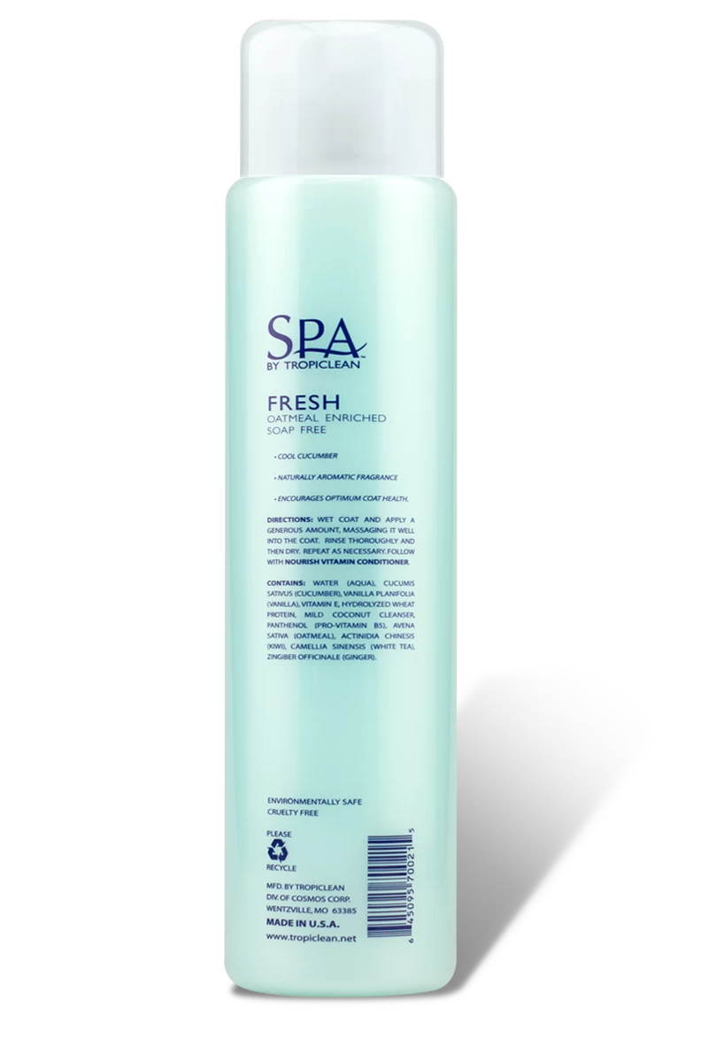 - SPA FRESH – A moisturizing shampoo for dogs that’s packed with ingredients that provide a surge of long lasting hydration with each wash.