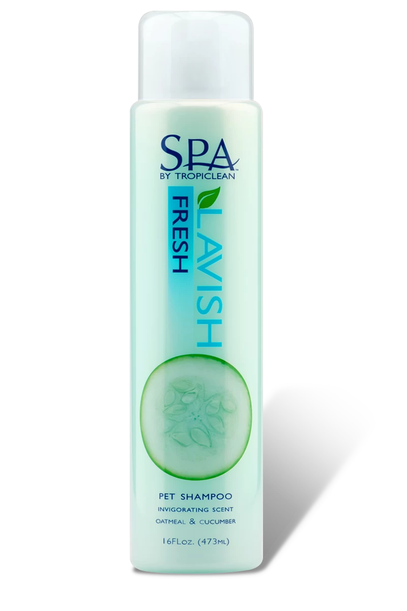SPA by TropiClean Lavish Fresh Pet Shampoo contains nourishing ingredients like wheat protein, vitamin E, provitamin B5, cucumber, and white tea that leave your pet’s skin and coat feeling soft and smooth. Enhanced with fragrant notes of vanilla, cucumber, amber, and lily, Fresh Pet Shampoo creates a luxurious grooming experience right at home. Shampoo is oatmeal enriched and soap free for a gentle and safe clean for dogs and cats 12 weeks and older.