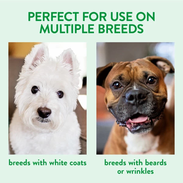Wet the pet’s coat, then gently massage into facial areas including cheeks, beard, and wrinkles, avoiding direct contact with their eyes. Wait 3 minutes, then gently wipe away any debris and rinse their face.