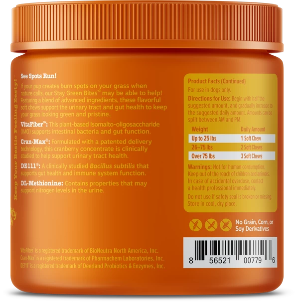 This functional chewable dog supplement features Cran-Max® (cranberry concentrate) with antioxidants that are clinically studied to help support urinary tract health. Plus, these chewables also include DL-Methionine, a premium Gut Health Blend (with Amylase, Protease, Lipase, Cellulase, Lactase, Bromelain), and Apple Cider Vinegar for additional support for urinary and gut health.